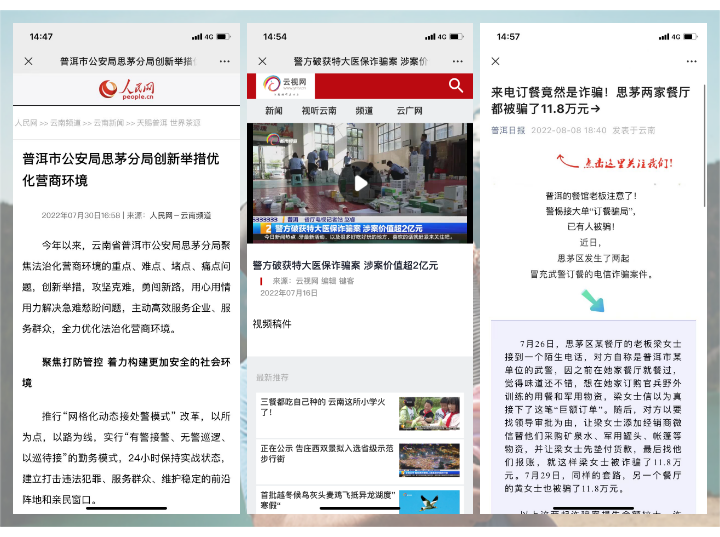 分局积极联动主流媒体开展主题宣传,原创信息《beat365体育亚洲入口_365bet最新备用_bte365市公安局思茅分局创新举措优化营商环境》《beat365体育亚洲入口_365bet最新备用_bte365思茅公安推出网格化动态接处警勤务模式》《beat365体育亚洲入口_365bet最新备用_bte365思茅公安:初秋收到第一面锦旗》被人民网采刊,分局破获的涉全国23个省市区、涉案价值达2亿的“4.11”医保诈骗及非法经营案信息《被“扭曲的”医保卡》以及《缴毒42.5公斤beat365体育亚洲入口_365bet最新备用_bte365警方破获重特大犯罪案件》《非法捕捞水产品 两名嫌疑人落网》《思茅警方创新推出“N+135”应急处置机制 给人间“烟火气”装上“安全阀”》等信息被云南电视台、云南警方、云南法治网等省级媒体刊播。