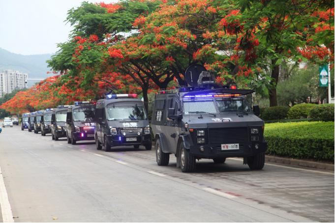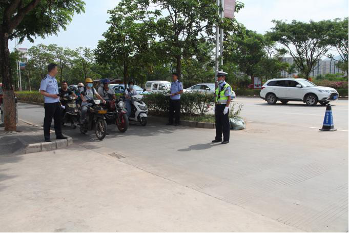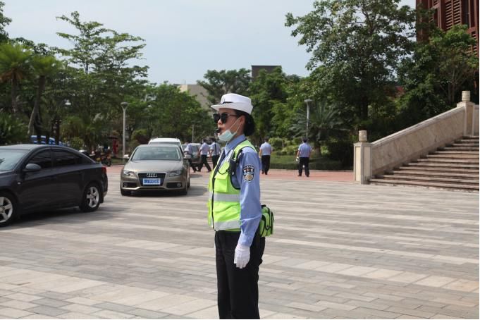 【对路面进行封控,确保车队顺利抵达会场】