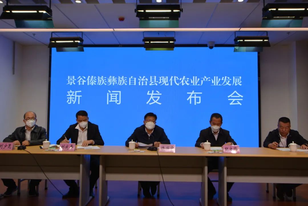 发布会上,饶兴宏通报了景谷现代农业产业发展情况。他指出,自党的十八大以来,景谷县委、县政府立足优势特色,带领全县干部群众锐意进取、攻坚克难,推进全县农业农村发展,全县粮食连年丰收,农民收入持续增长,农业现代化水平大幅提高,农业产业发展取得明显进展。一是粮食生产稳中有升。2022年,全县粮食播种面积69.65万亩,产量15.98万吨,实现粮食产量连年增长。二是特色经作转型升级。依托“洋浦南华”、“多上”、“雷沃”“兴迈”等本土加工企业,农业加工业不断增强,产业链不断延伸,特色经作产业不断转型升级,提质增效。全县糖料蔗种植16.17万亩,21/22榨季入榨70.60万吨,突破历史新高。全县茶叶种植面积23.63万亩,有机茶园认证面积3.87万亩,绿色食品茶园面积0.68万亩,产量1.37万吨。全县水果种植面积11.3万亩,产量20.21万吨;蔬菜种植面积12.83万亩,产量16.56万吨;咖啡种植面积3.4万亩,产量0.28万吨。三是畜牧产业提质增效。全县有肉牛养殖农户11316户,标准化牛厩面积5.53万平方米,青贮池3.2万立方米,规模养殖肉牛大户72户,具有上规模(肉牛存栏在500头以上)的龙头企业4家。四是水产产业巩固提升。全县水产养殖面积2.47万亩,产量1.91万吨。五是生物药业巩固拓展。全县魔芋种植面积1.37万亩,综合产值1.49亿元;有重楼种植面积4789亩,滇黄精种植面积4718.6亩,白及种植面积696.6亩,茯苓种植面积12940.3亩;各类生物医药种植5.96万亩,实现综合产值9.15亿元。