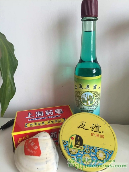 在思茅区天生祥超市的某个角落,一些老物件(品)静静地“躺在”货架上,如“上海杏仁蜜”“咏梅柠檬蜜”“香海桂花蜜”“宫灯杏仁蜜”“蛤蜊油”“友谊护肤脂”“马牌润面油”“上海女人雪花膏”“雅霜”等,这些上世纪七八十年代流行的护肤品让人回想起当时的生活情景。当时人们都把这些护肤品统称为“雪花膏”,而且对其品质百般信赖。随着经济的发展,时代的进步,这些国产护肤品逐渐淡出人们的生活,也许只有看到那个包装、闻到那个气味才能把人们拉回从前那个叫“雪花膏”的年代。
