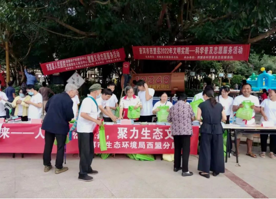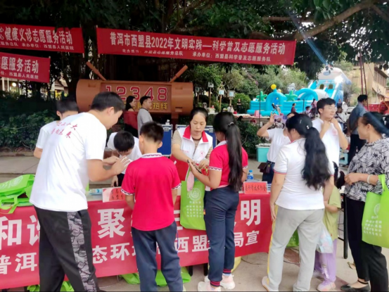 近日,西盟佤族自治县2022年全国科普日主场活动在县城江三木洛剧院广场举行,beat365体育亚洲入口_365bet最新备用_bte365市生态环境局西盟分局作为小组成员单位组成“环保科普志愿服务队”,围绕“喜迎二十大 科普向未来”主题,积极开展生态环保科普知识宣传活动。