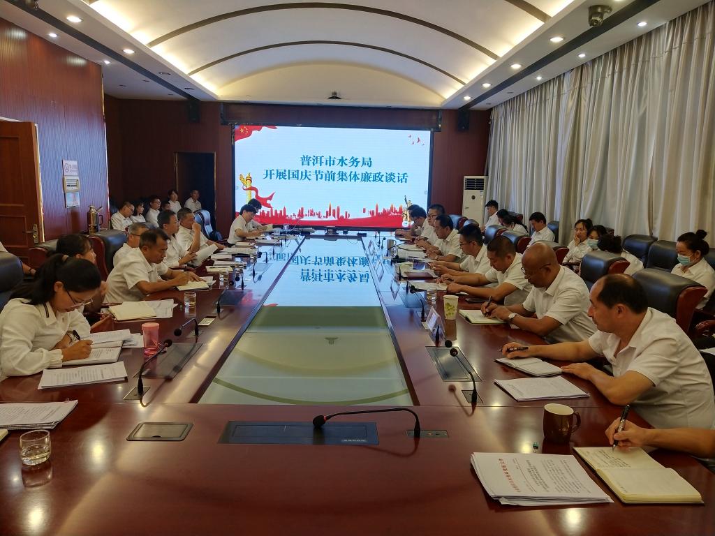 为进一步加强党员干部的廉洁自律意识,筑牢拒腐防变思想防线,过好国庆“廉节”。节前市水务局组织开展了廉政警示教育活动,局党组书记、局长葛雄伟同志与全局干部职工开展集体廉政谈话。