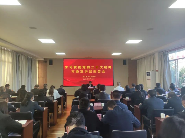 11月29日,学习贯彻党的二十大精神市委宣讲团报告会在市交通运输局举行。市委宣讲团成员、市交通运输局党委书记、局长杨春高作宣讲报告。