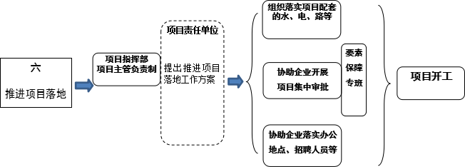 (八)完善项目落地机制。建立市级重大招商引资项目库,建立健全项目主管推进招商引资项目建设工作机制,对成熟度较高并具备开工条件的重大项目纳入工作机制统筹推进。建立招商引资项目投诉处理机制、联办协办机制、优质招商项目流转机制,提高招商项目落地在考核中的权重,力保项目高效落地。