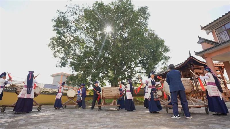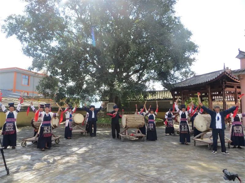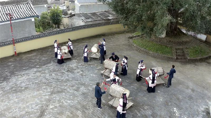 哈尼族牛皮鼓舞是哈尼族舞蹈中最具代表性的舞蹈之一,哈尼族有鼓必有舞,有舞必有鼓。牛皮鼓舞是哈尼族在四季更替中围绕稻作生产为核心而产生的祭祀活动,也是哈尼族民间节日庆典的重要构成部分。表演时,先敬献天地神灵、祭拜祖先,有唱史诗、唱述生产劳动、赞美英雄、歌颂爱情等内容。