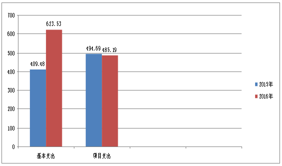 的43.76%。2016年基本支出比2015年增加2,140,555.93元,增长52.27%,主要是单位人员调入、调资、增资,交通补贴,绿色经济奖;2016年项目支出比2015年减少95,031.52元,下降1.92%,主要原因为本单位加快推进2015年中央转移支付项目执行力度。